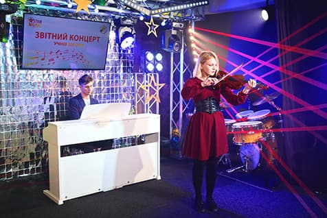 STAR MUSIC — це не просто школа. Це простір, де музика оживає, а серця наповнюються ритмом та безмежним натхненням! В STAR MUSIC ідеально поєднані: домашній затишок, що знімає будь-який страх сцени, та атмосфера любові до музики. Тут народжується музична історія! Кожен концерт в STAR MUSIC— це справжнє музичне свято та унікальне шоу з авторським декором і професійною фото/відеозйомкою. Вражає сцена, яка наповнена не лише навичками учнів, а й майстерністю викладачів. Виступи наставників та учнів захоплюють і доводять: тут музика — це справжнє мистецтво. Важливим є те, що на сцені в STAR MUSIC ви ніколи не будете самі! Ваш викладач — надійний друг і бекстейдж-герой — завжди поруч, щоб підтримати і подарувати вам ту саму зіркову впевненість 🌟. Відчуйте енергію підтримки, яка допомагає розкрити свій потенціал і відчути себе справжнім Артистом з великої літери.