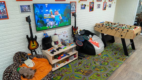 З красивими екзотичними папужками, PlayStation, настільним футболом, розмальовками та іграшками для найменших та багато іншого.